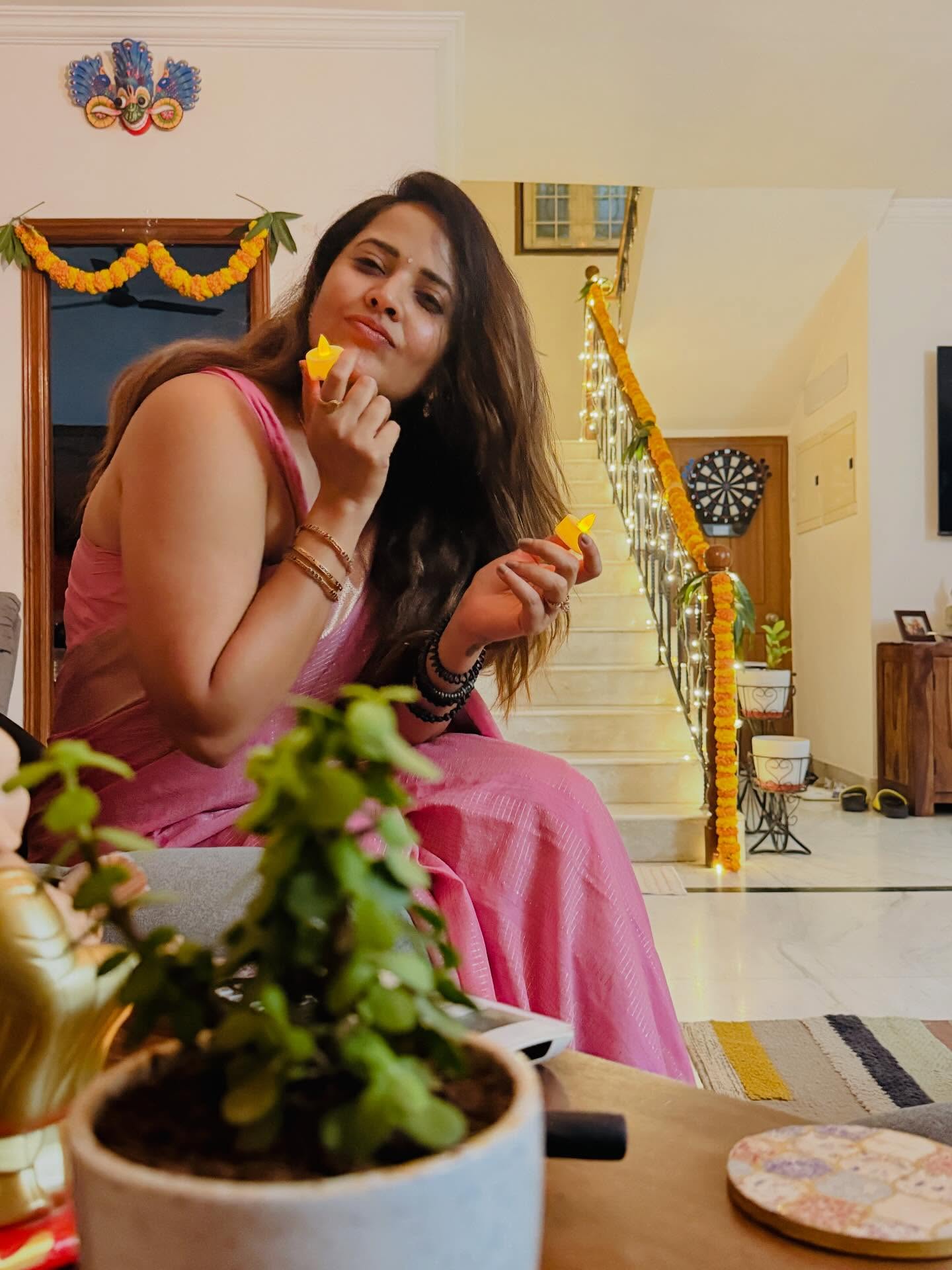 Gallery Anasuya Bharadwaj : అనసూయ దీపావళి సెలబ్రేషన్స్ October 21, 2025 Anasuya Bharadwaj : నటి, యాంకర్ అనసూయ భరద్వాజ్ దీపావళి పండుగను తన భర్త, పిల్లలతో కలిసి సంతోషంగా జరుపుకున్నారు. ఆమె తన ఇంటిలో దీపాలను వెలిగించి, కుటుంబంతో కలిసి సంప్రదాయ దుస్తుల్లో ఫోటోలు దిగి, ఆ వేడుకల చిత్రాలను సోషల్ మీడియాలో పంచుకున్నారు