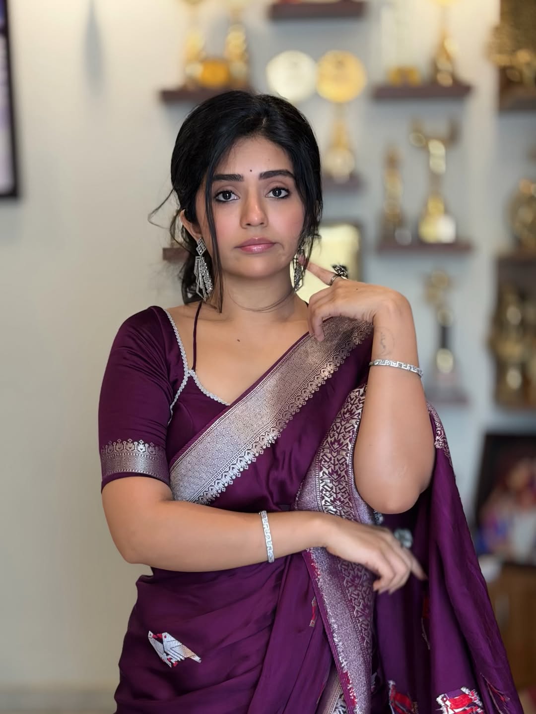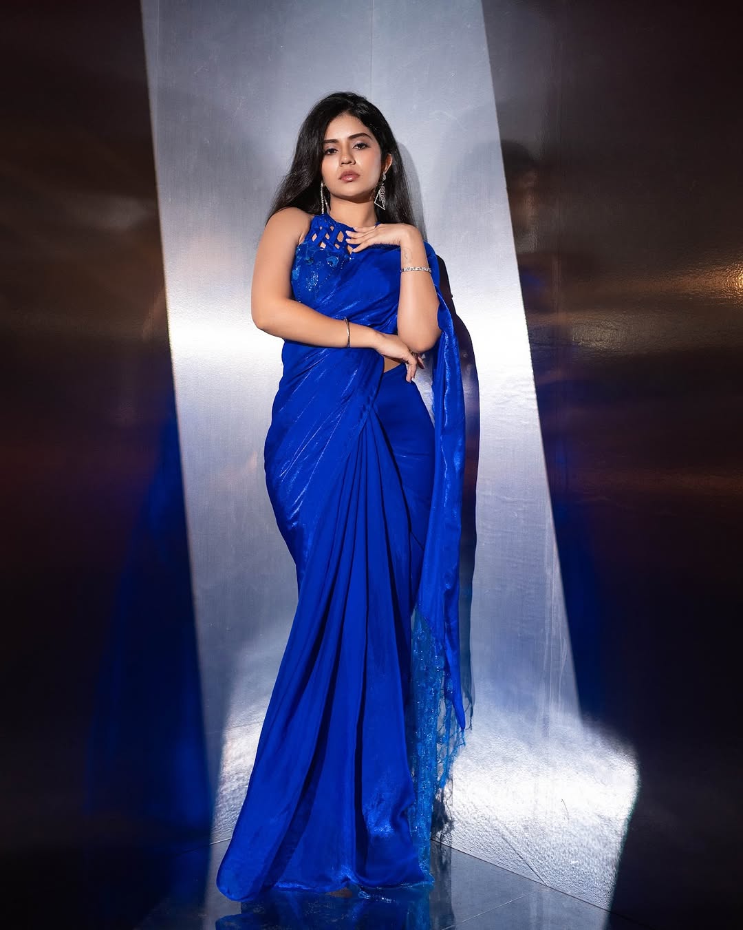 Meghaa Shetty : కన్నడ చిత్ర పరిశ్రమలో తనకంటూ ఒక ప్రత్యేకమైన గుర్తింపు తెచ్చుకున్న నటి మేఘా శెట్టి, సోషల్ మీడియాలో ఎప్పుడూ యాక్టివ్గా ఉంటూ తన లేటెస్ట్ ఫోటోలను షేర్ చేస్తూ అభిమానులను అలరిస్తుంటుంది. తాజాగా ఆమె పోస్ట్ చేసిన ఫోటోలు నెట్టింట వైరల్ అవుతున్నాయి. ముఖ్యంగా రాయల్ బ్లూ మరియు మెరూన్ రంగు చీరల్లో ఆమె కనిపిస్తున్న తీరు నెటిజన్లను కట్టిపడేస్తోంది.